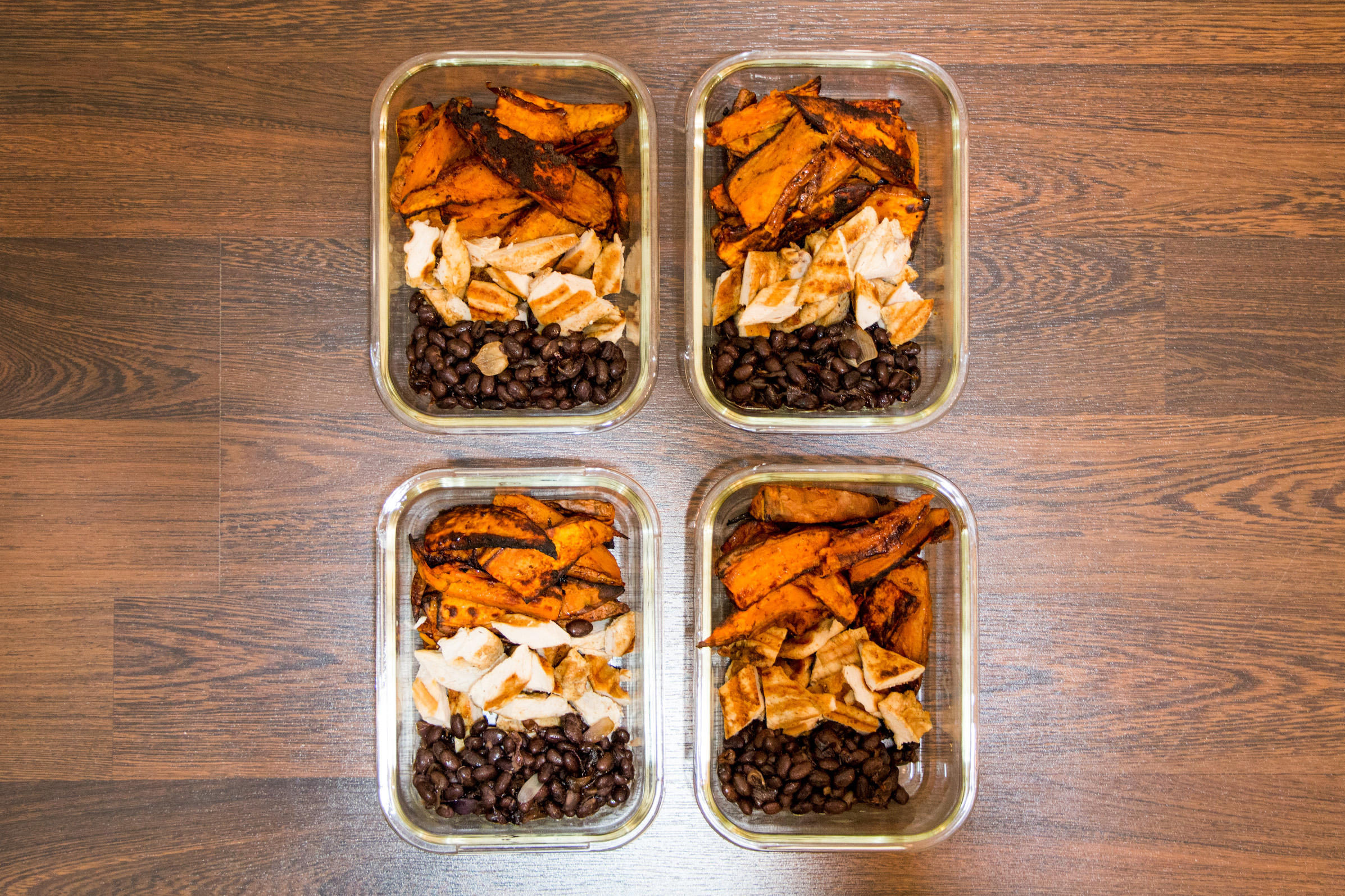 I was trying to up my protein here, but I also upped my carbs because I’d needed it that week. Now that I’m lowering my carb intake and upping my protein some more, I’d probably reduce the amount of sweet potato — but that’s the great thing about meal prep. You mix and match to suit your needs and requirements.
