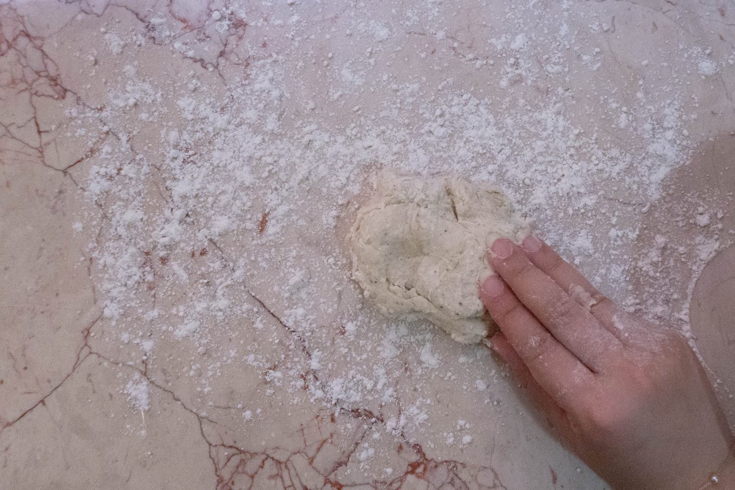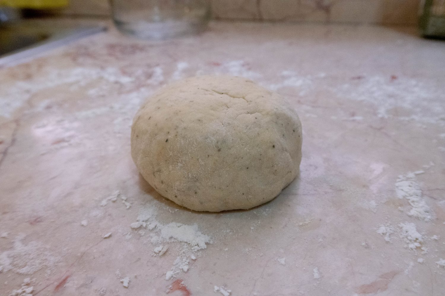 - Mix the dry ingredients together first, then mix in the yoghurt and olive oil and knead well for 3-5 minutes.